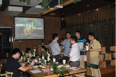 在悠扬的小提琴伴奏声中,湖南汇博化工科技有限公司技术总监邹忠清分享了他的创业故事,并希望年轻一代从专业领域出发,坚定信念,扎实工作,扎根岳阳。以80后为主体的青年博士还认真倾听了侯朝辉、潘港等博士在创新创业道路上的经验和建议。现场气氛热烈,博士们互动交流,畅谈体会和感想。