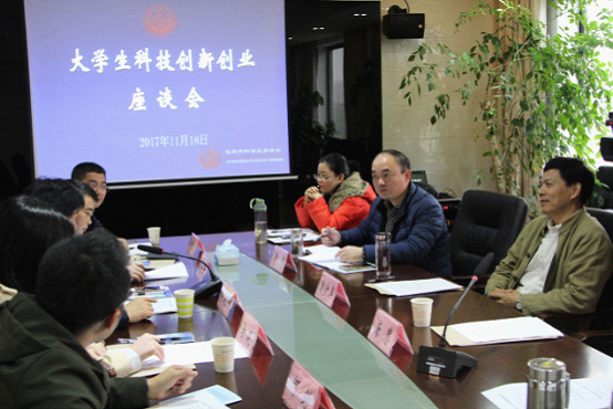 2017年11月18日,岳阳市科协和湖南理工学院联合举办大学生科技创新创业座谈会。会议由市科协党组成员、副主席唐慧主持,市科协党组书记陶沙岸出席并讲话。湖南理工学院招生就业指导处处长喻运斌、副处长余永红和大学生创新创业孵化基地指导老师及创业学生代表参加了座谈会。