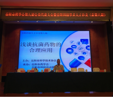 6月27日上午,由岳阳市科协主办,市药学会、市科技活动管理中心承办的第八期岳阳科创学术人才沙龙在岳阳市云梦宾馆举行。本期沙龙特邀湖南省药学会理事、岳阳职业技术学院教授、市药学会副理事长凌伯勋作主旨讲座,主题是“浅谈抗菌药物的合理应用”。全市百余名药学科技工作者参与沙龙活动。