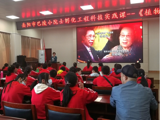 在市科技馆多功能厅,孩子们首先观看了《岳阳籍院士》电视专题片,都为家乡的科学家贡献智慧力量,建设强大祖国而感到自豪。