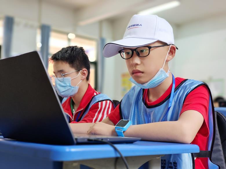 比赛现场,机甲大师机器人对抗赛可以说场面最为激烈,令人看的热血沸腾,堪称现实版星际大战。竞赛区内,只见机甲战车、步兵机器人、无人机等在赛场上来回穿梭,展开激烈角逐。参赛选手们个个神情专注,激烈地交流进攻策略,全神贯注地盯着电脑屏幕,键盘和鼠标发出急促的声响。现场裁判刘阳介绍,该比赛通过操控机器人发射弹丸攻击对方机器人或基地,实行战术射击对抗,对战过程中,学生需要使用Python语言进行编程,并以数学、物理、信息技术等学科知识做支撑来赢得比赛。
