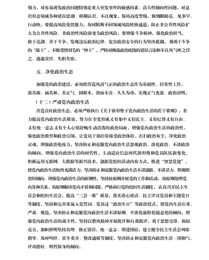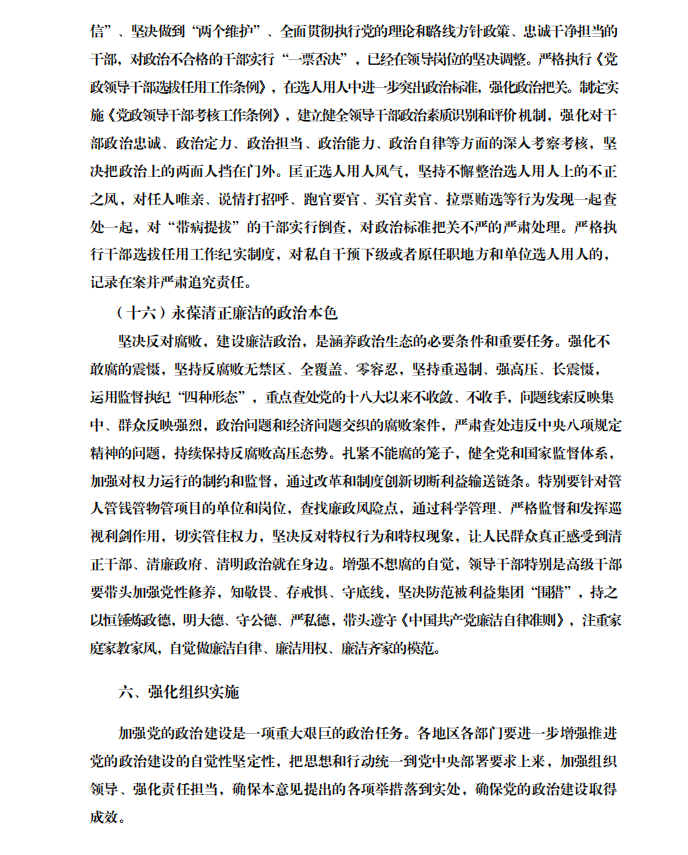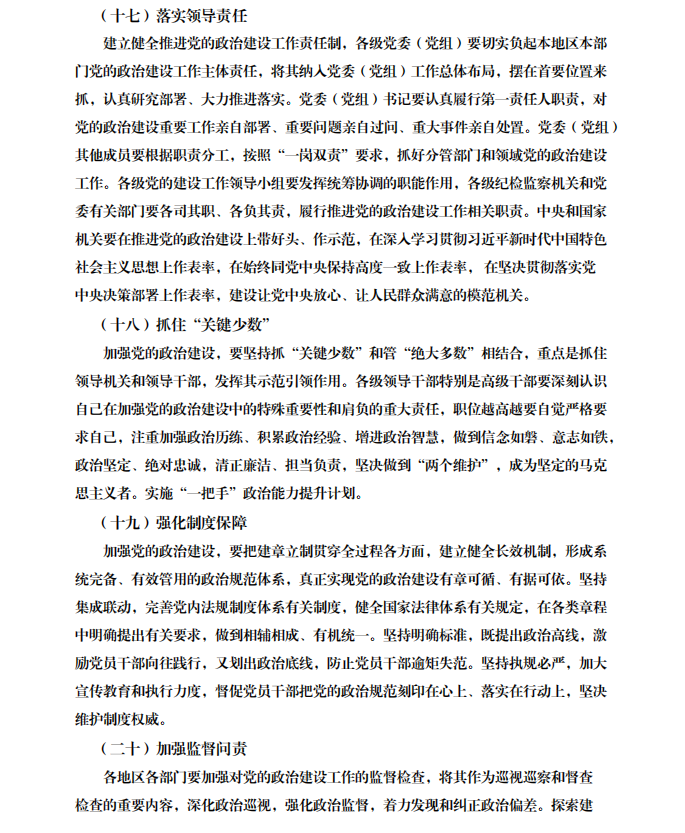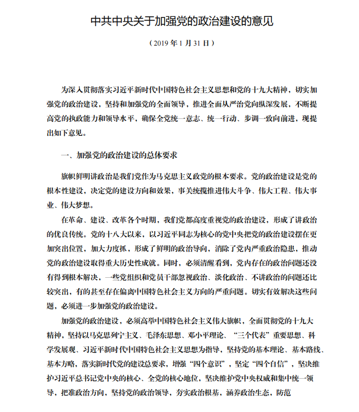 中共中央关于加强党的政治建设的意见 (中共中央 2019年1月31日)