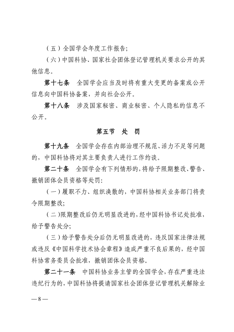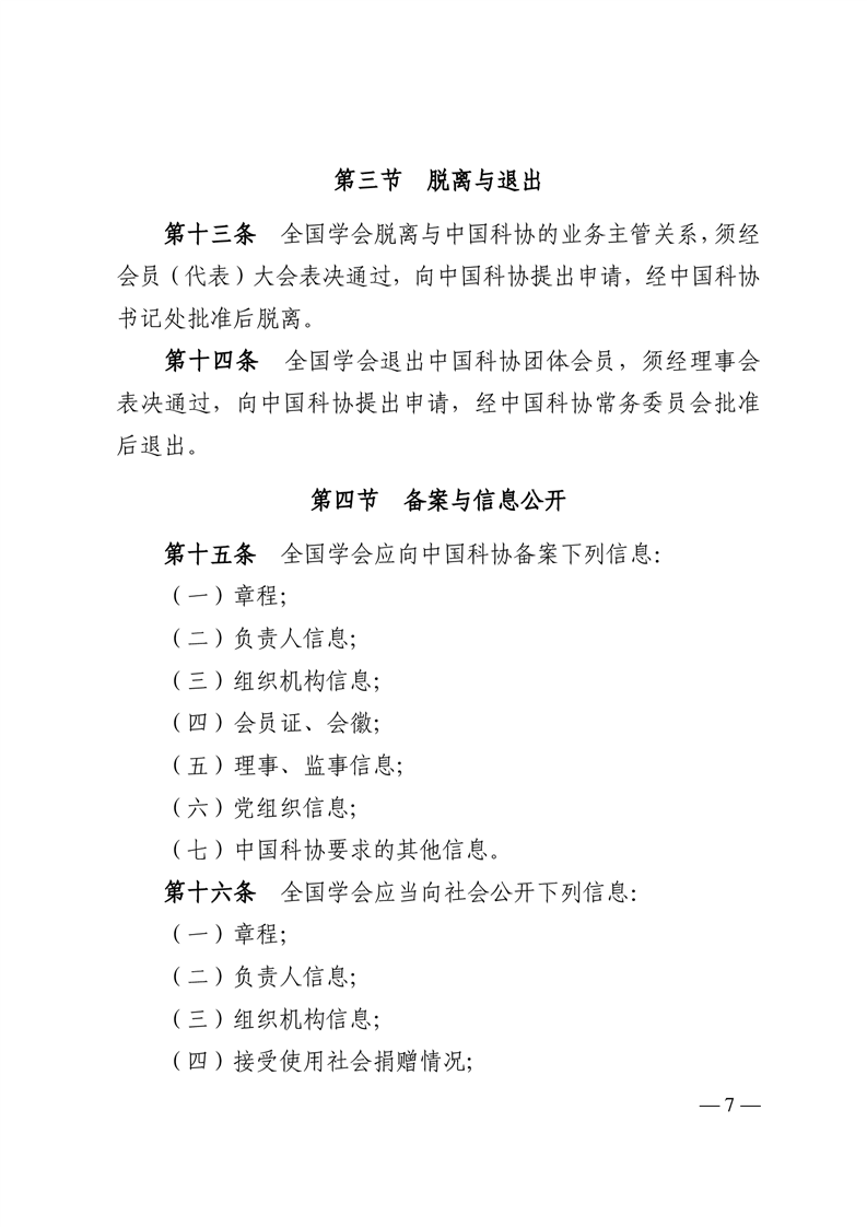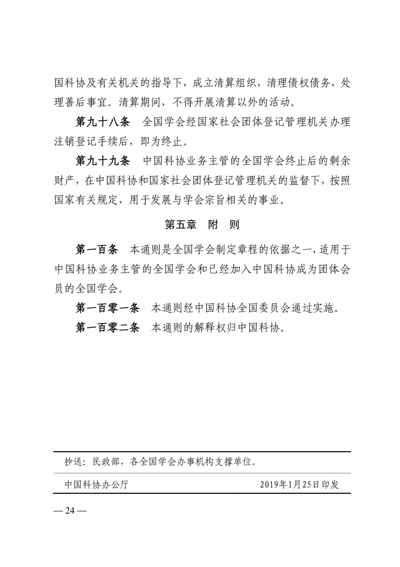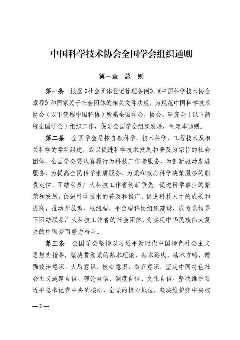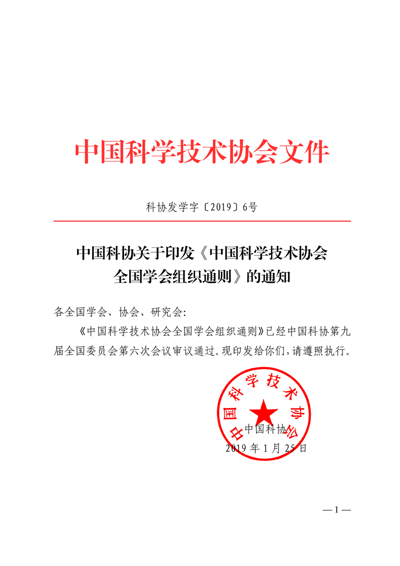 中国科协关于印发《中国科学技术协会全国学会组织通则》的通知