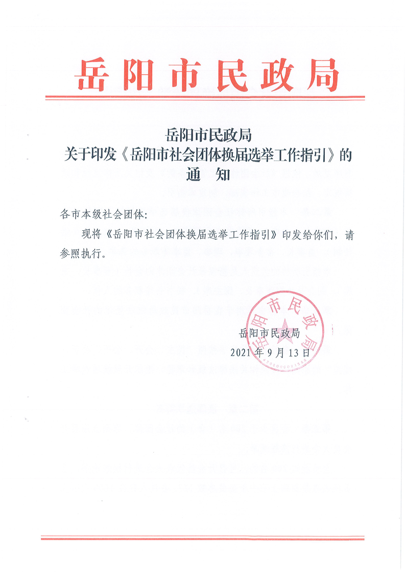 岳阳市民政局关于印发《岳阳市社会团体换届选举工作指引》的通知