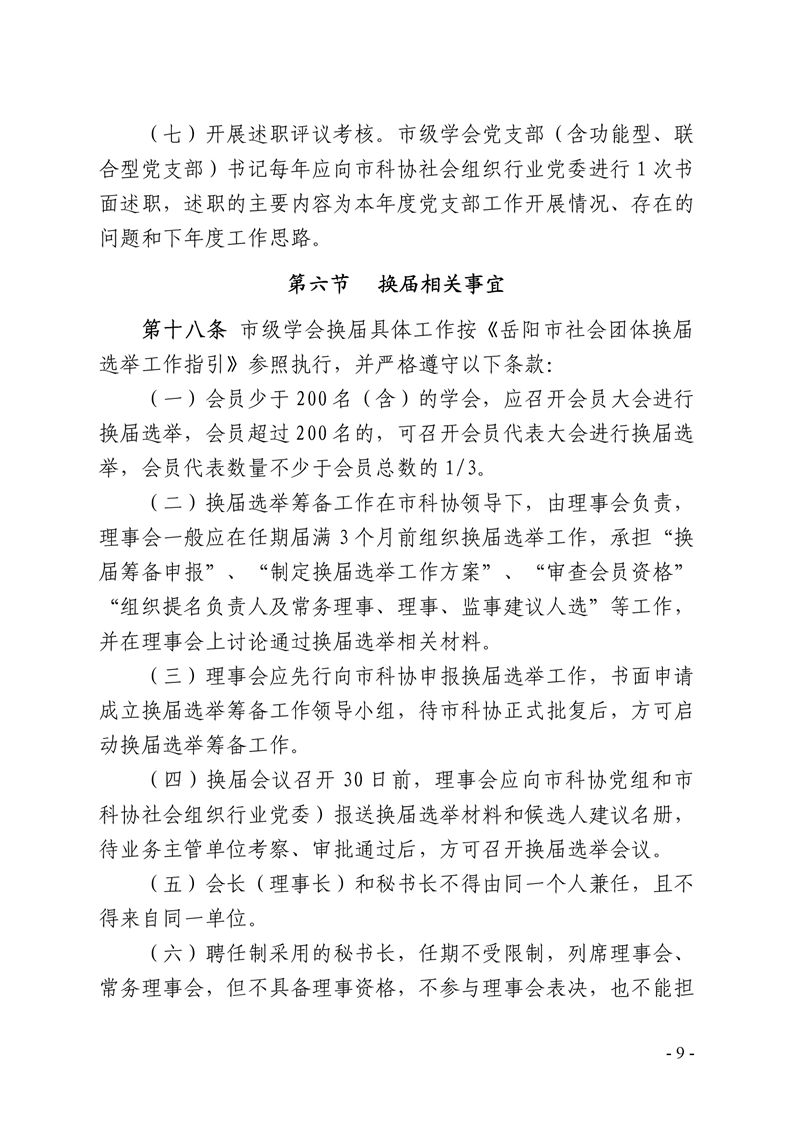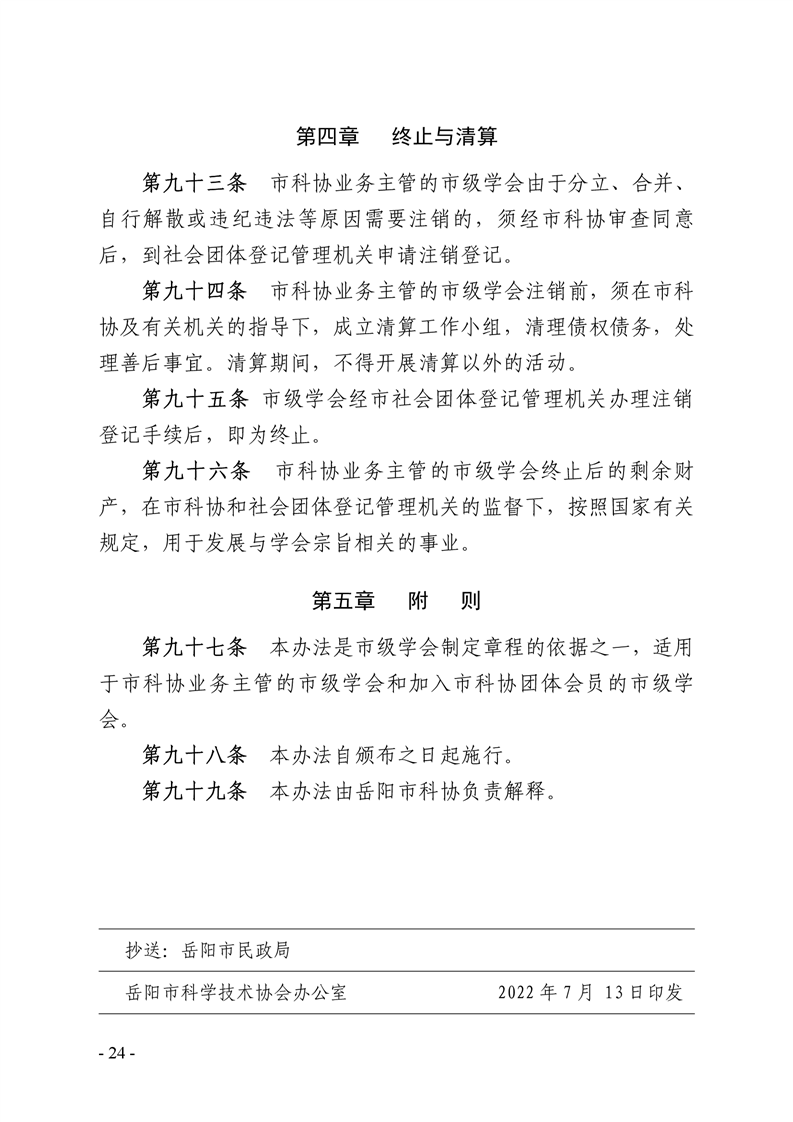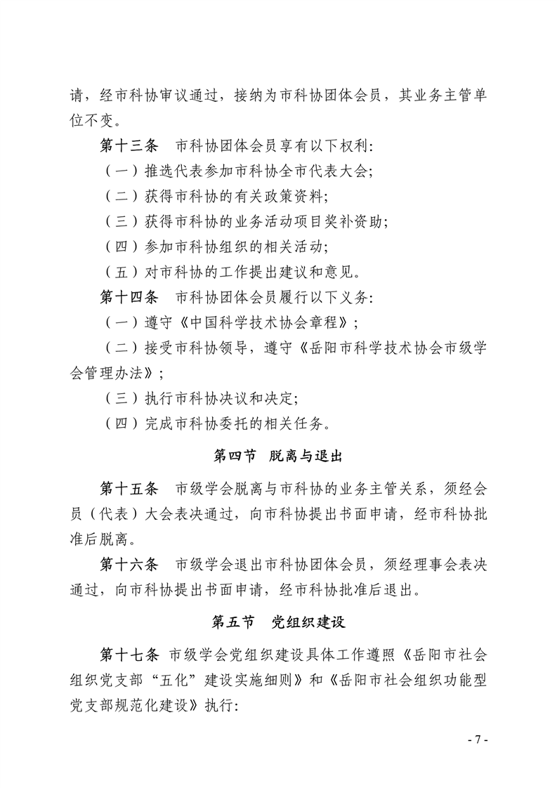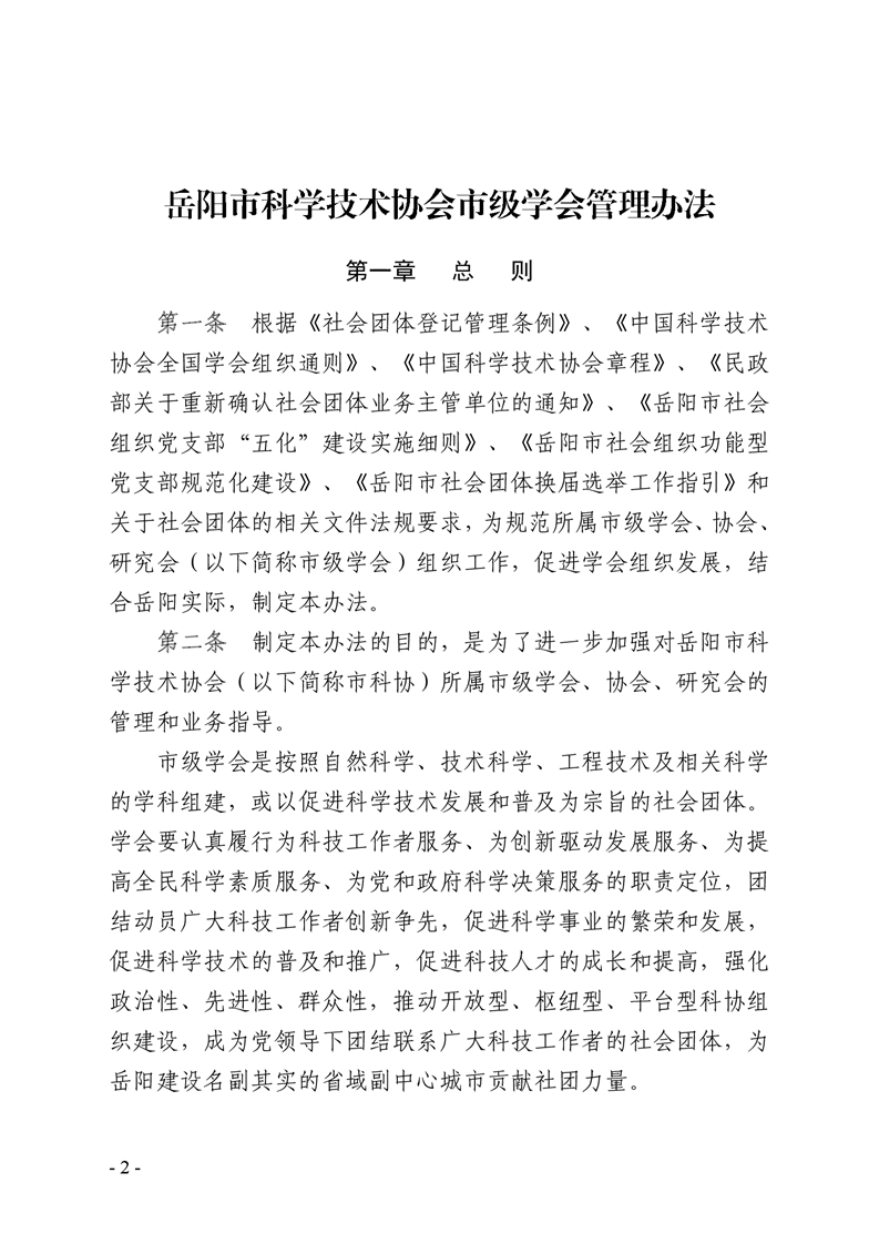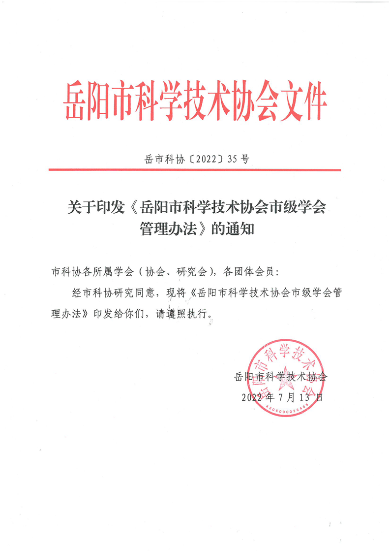 关于印发《岳阳市科学技术协会市级学会管理办法》的通知