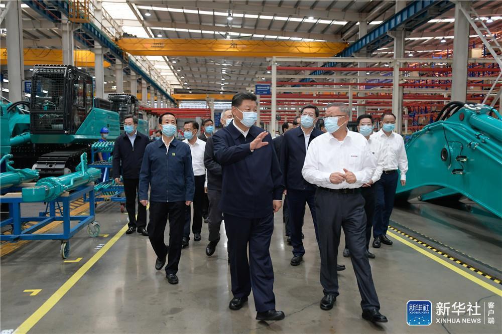 17日下午,习近平在长沙市考察调研。山河智能装备股份有限公司是一家装备制造领域的龙头企业,产品行销全球。习近平来到公司生产车间,察看装备制造流程,了解技术研发、生产制造情况,对他们的创新精神表示赞赏。习近平强调,自主创新是企业的生命,是企业爬坡过坎、发展壮大的根本。关键核心技术必须牢牢掌握在自己手里。要坚定不移把制造业和实体经济做强做优做大。我们强调构建新发展格局,不是关起门来搞建设,而是要继续扩大开放。