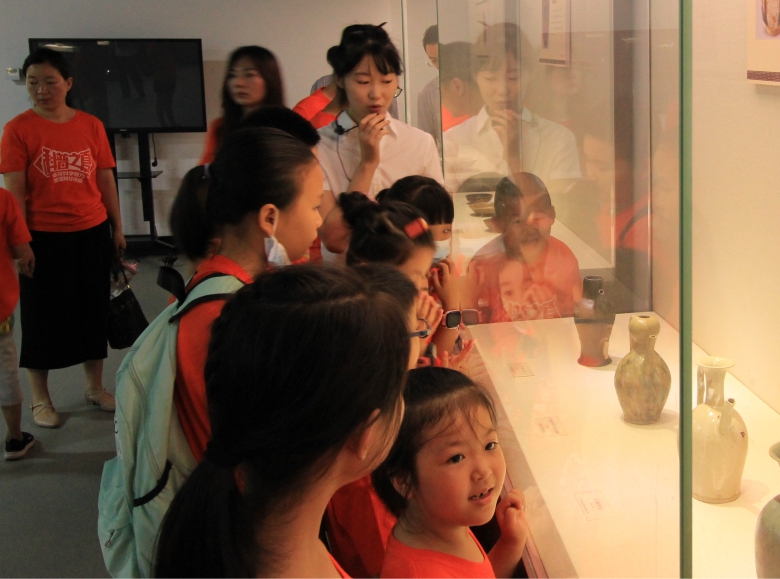 在博物馆的《洞庭长歌-岳阳古代文明陈列》和《烟浊洞庭——长沙窑瓷器丝路之旅》展厅里,孩子们了解到了从渔猎采集、刀耕火种的石器时代到钟鸣鼎食、鼎臑盈望的青铜时代的跃迁,直观感受中国瓷器从汉末到明清时期波澜且细微的变化过程。在《岳阳民俗文化》展厅里,21世纪出生的小朋友们亲眼看到近代的生产生活实物,面对一件件“新奇”的古老物件,惊叹古代工具之精巧和祖辈们的智慧。在青少年互动中心“寻宝之旅”活动中,小朋友拿着答题卡在家长的陪同下前往各个展厅寻找答案,探索文物上蕴含的“宝藏”。整个过程大人小孩齐上阵,小伙伴们互相合作,即促进了亲子沟通,也增强了小朋友们的合作意识。