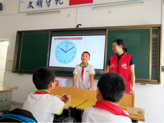 近日,岳阳市科技馆科普大篷车先后驶进云溪区云鹰小学和松阳湖学校,正式启动“科学家精神宣讲走进思政课堂”活动,思政课通过师生讲述科学家故事、科学知识小问答、科学实验表演等形式,让学生认识、了解并崇尚科学家,科技馆还为同学们发放了“岳阳籍院士系列书签”。