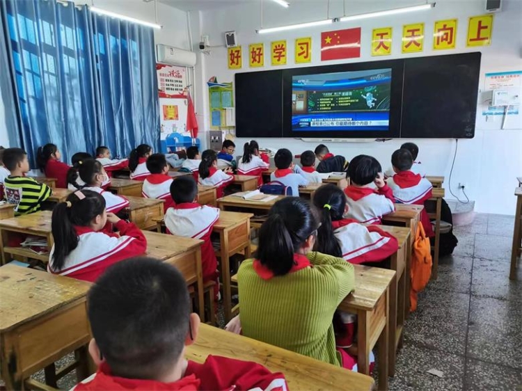 岳阳县中洲乡兴旺学校集中组织师生观看了“天宫课堂”第三课直播。孩子们被太空科学实验深深吸引,在三位航天员老师的带领下,一个个神奇的科学实验引的孩子们阵阵欢呼,孩子们表达出了对太空的向往。最神奇的是毛细效应实验,那么粗的管子水居然能上升到管子顶部,太神奇了......孩子们纷纷表示:祖国的航天事业蒸蒸日上,将来也要为建设科技强国尽自己的一份力,也为国家科技实力的强大而感到骄傲和自豪!