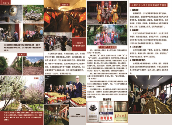 湖南省十三村食品科普教育基地位于临湘市羊楼司镇,是一家集三国文化、农耕文化、酱文化于一体的园林式国家AAA 级景区、岳阳市科普旅游教育基地、岳阳市研学旅游基地。有百果园、千磨坪、古酱窖等自然历史人文景观共18处,农耕文化展览馆、德育教育展览馆、十三村形象馆、禁烟禁毒馆等文化展览馆4处。2024年纳入百万武汉市民游岳阳首站接待景区。基地有专职工作人员13名,年度科普活动经费68万元,每年举行主题科学技术普及活动36场次,年主题科普活动受众27万人次,年接待研学旅游青少年5万人次,年接待普通游客30余万人次。