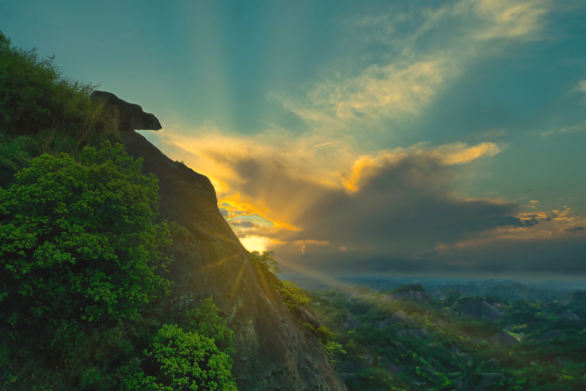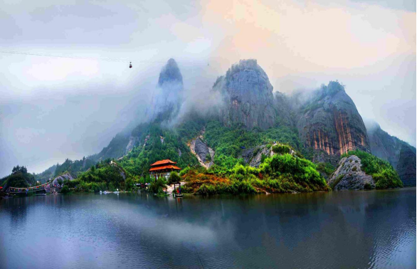 湖南平江石牛寨国家地质公园,位于湘鄂赣三省交汇处的平江县,面积51.53平方公里,系目前国内规模最大的丹霞地貌群落之一。公园景观以“十里绝壁、百里丹霞”为典型代表,地质遗迹多达170余处,