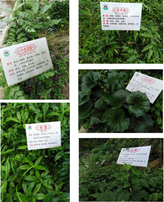 基地位于湖南东北角湖南省龙窖山风景名胜区核心景区内,传说李时珍曾采药于此,素称“江南天然药库”。现有 800 多种 中草药分植于仿瑶族石文化依山而建的 5 亩石梯田内,梯田按《本 草纲目》植物分类为草本园、蔬菜园、果木园等科普观光区,李时 珍采药塑像矗立园中心。观光区种植有八角莲、细辛、钩藤、灵芝、 雷公藤、白术、十大功劳、木通、黄精、何首乌等道地药材。园内 办公楼分为中草药标本馆、多媒体电教室、养生馆和药膳房。中草 药标本馆有标本 400 多套件;多媒体电教室可以容纳 60 多人,播放 中医药影视剧、培训和办中医药讲座;药膳房可以同时接待 120 人 就餐。基地有停车场 500 余平米。有宣传窗口,布展中国古代十大医药学家。园外建有中草药种植体验基地 6000 多平米,有木通园、 紫苏园、黄精园和药用蔬菜园。入园便可游园或对照标本识药材, 听中医药文化讲座;溯溪观瀑布,赏樱花,登山看日出和云海,领 略山水风光;走茶马古道,游堆石遗址,探秘瑶族精神家园。