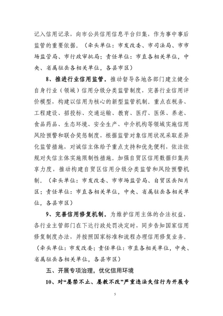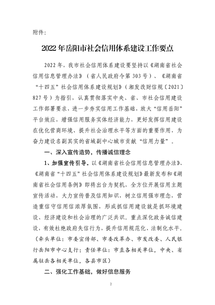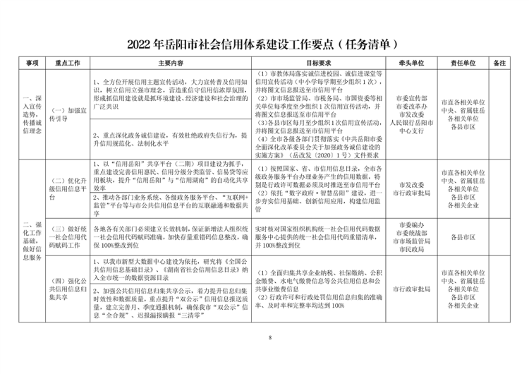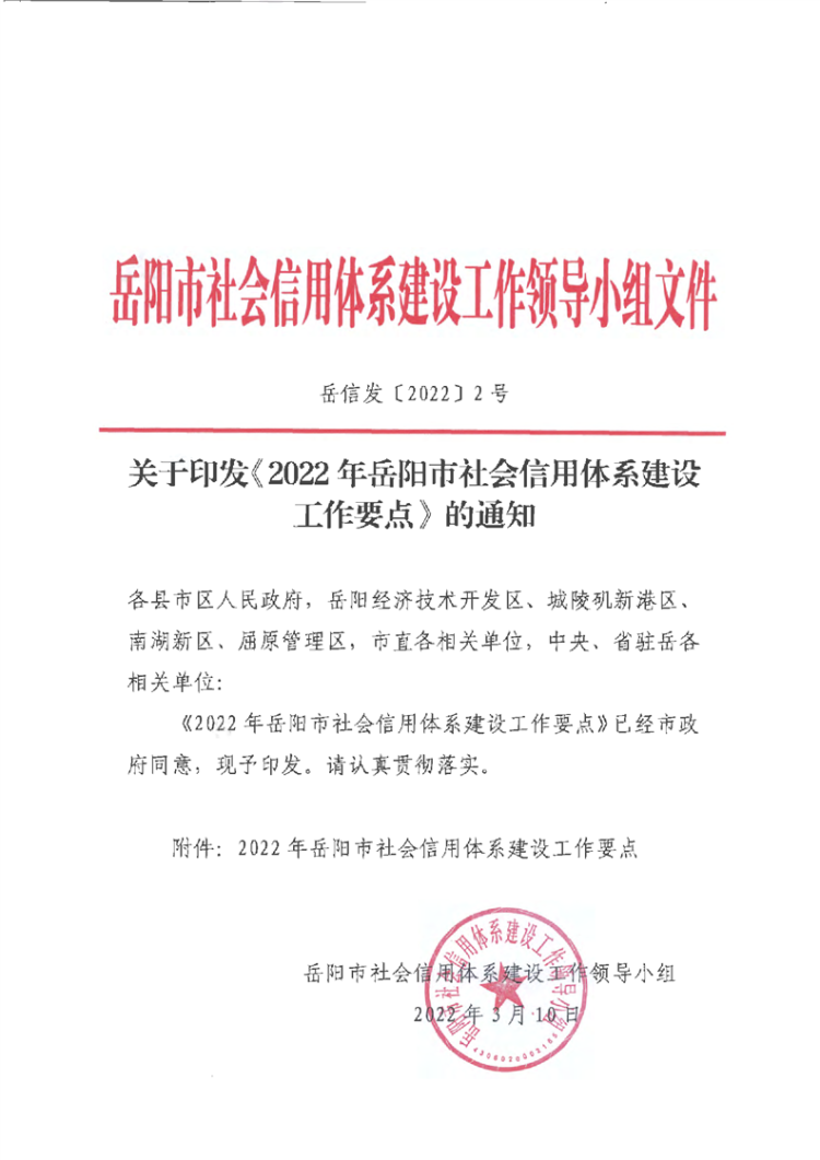 关于印发《2022年岳阳市社会信用体系建设工作要点》的通知