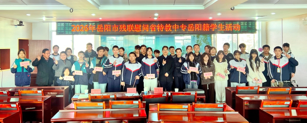2026年1月14日上午,岳阳市残联党组书记周拥军带队前往湖南省特教中等专业学校,看望慰问在校岳阳籍学生。省特教中专校长陈媛媛、副校长王健等陪同。市残联党组成员、副理事长戴述广等参加。
