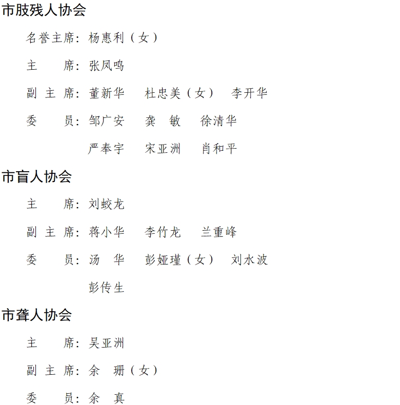 (2023年6月14日市残联第七次代表大会选举产生)