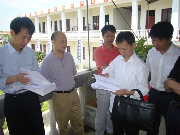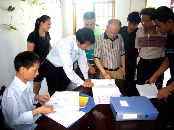和岳阳市残联副理事长向科军、岳阳县残联理事长许勇刚仔细查看岳阳县残疾人托养服务中心档案资料