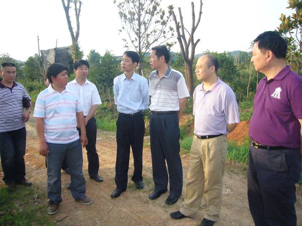 在临湘市副市长刘岳旭陪同下,省残联副理事长谭奇元一行视察临湘市残疾人花卉苗