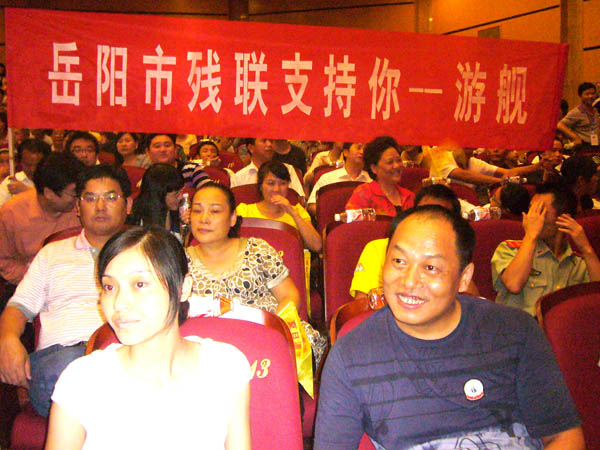 2009年9月19日,岳阳市残联组织机关干部成立拉拉队,支持残疾人歌手游舰参加全市才艺大奖赛总决赛