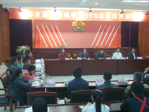 2011年9月19日,岳阳市第一届残疾人SYB培训班开班典礼在岳阳残疾人服务中心六楼会议室隆重举行。来自各县市区的28名残疾人学员朋友满怀信心参加了SYB培训班开班仪式。市残联李正望副理事长与市财政局、市人社局、市电大的相关部门领导一同出席了本次开班典礼。
