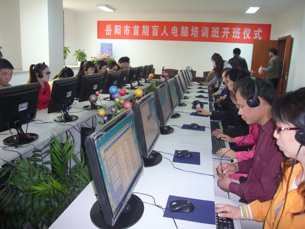 岳阳市盲人协会主席、本期培训班主讲教师赵忠球首先发言。他说,我是一个喜欢读书、热爱学习的盲人,我曾经一闻到书香就欣喜若狂、就不想吃饭,书是我生命中不能缺少的伙伴。然而,由于“睁眼一抹黑”,盲人读书实在又太不方便了!2004年,我意外地接触了电脑,我的生活从此发生了翻天覆地的变化。电脑和网络让我们看到了一个崭新而宽广的世界。现在,除了为客人做按摩,我的业余时间几乎都“耗”在了电脑上,毫不夸张地说:电脑和网络赐给了我们盲人一双“智慧的眼睛”!希望学员们好好珍惜这次宝贵的学习机会,尽早和我一样,借助电脑高科技的力量,让我们盲人暗淡无光的生活也能够五彩缤纷起来!