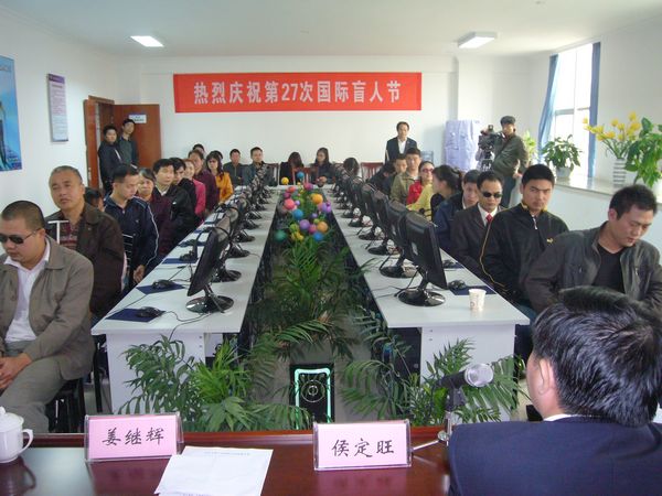 岳阳市劳动就业服务局局长姜继辉发表热情洋溢的讲话。他说,近年来,岳阳市残联在以侯定旺理事长为首一班人的领导下,坚持服务残疾人宗旨,攻坚克难,求真务实,开拓创新,走出了一条切合岳阳实际的发展路子,在促进残疾人“体面就业、尊严生活”、建设城区无障碍设施、方便盲人出行,加强基层组织建设、发挥盲协作用等方面塑造了工作特色,打造了工作亮点,取得了显著成绩。今天举办这个盲人电脑培训班,既是市残联认真贯彻落实党中央、国务院《关于促进残疾人事业发展的意见》的实际行动,又是践行民本岳阳执政和发展理念的具体体现,还是兑现残联系统“政策、项目、工作、基层”四个落实,在盲人信息交流无障碍方面的一次有益探索。在全市具有典型和示范意义。