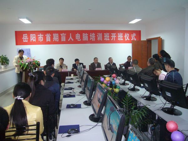 金秋岳阳,风光无限;美丽洞庭,魅力无穷。10月15日,为热烈庆祝第二十七个“国际盲人节”到来,在岳阳市残联和岳阳市劳动就业服务局的大力支持下,岳阳市残疾人劳动就业服务中心和岳阳市盲人协会联合举办的岳阳市首期盲人电脑培训班,在岳阳残疾人服务中心电脑培训基地举行开班仪式,岳阳市残联理事长侯定旺、岳阳市劳动就业服务局局长姜继辉、岳阳市残联副理事长向科军和岳阳市盲人协会名誉主席何炼炉出席仪式。岳阳市残联副调研员、市残疾人劳动就业服务中心主任巢向阳主持开班仪式。