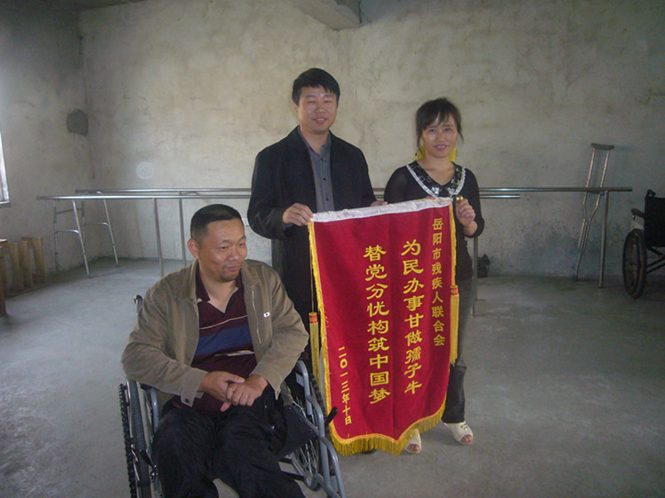 临别之际,李陆华的妻子激动地拿出三面锦旗,她说:“我们一家衷心感谢市政协、市残联和博康康复中心,没有你们的帮助,我们不敢幻想李陆华还能站起来!”