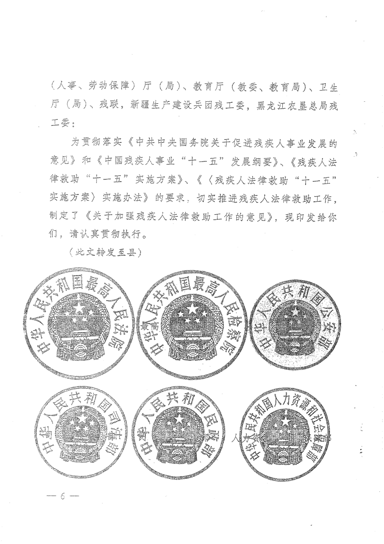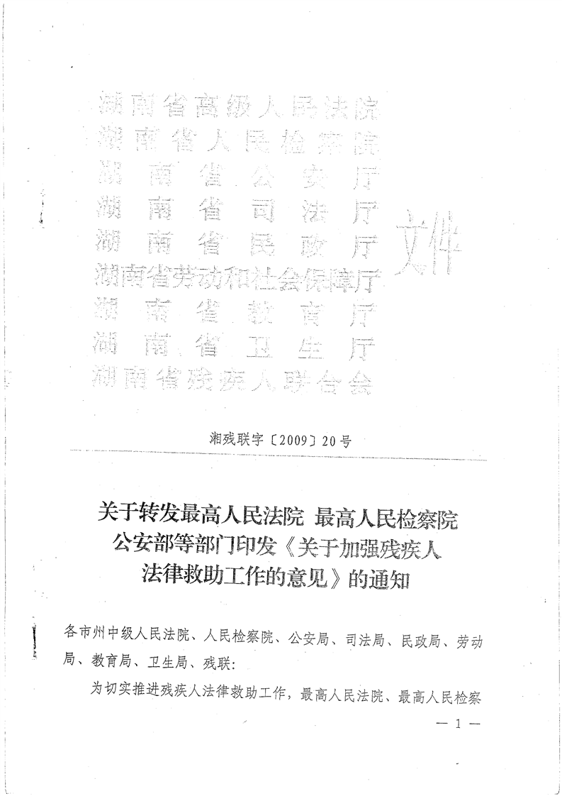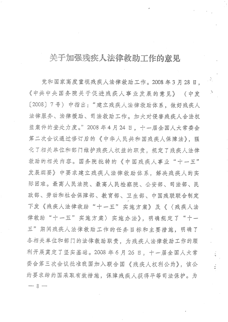 关于印发《关于加强残疾人法律救助工作的意见》的通知