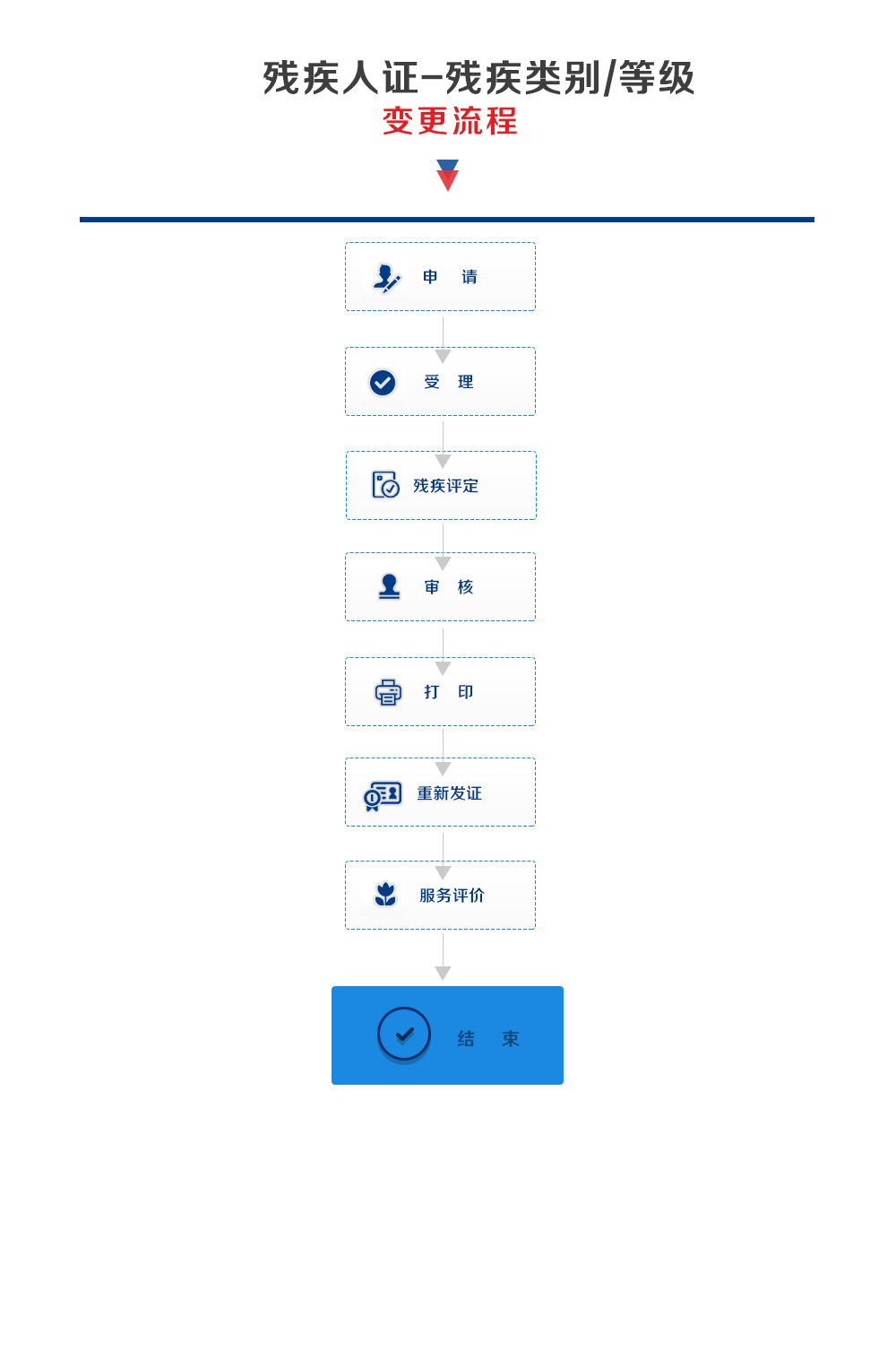 凡持有《中华人民共和国残疾人证》的残疾人,符合残疾标准的视力、听力、言语、肢体、智力、精神及多重残疾人均可申请残疾人证变更。