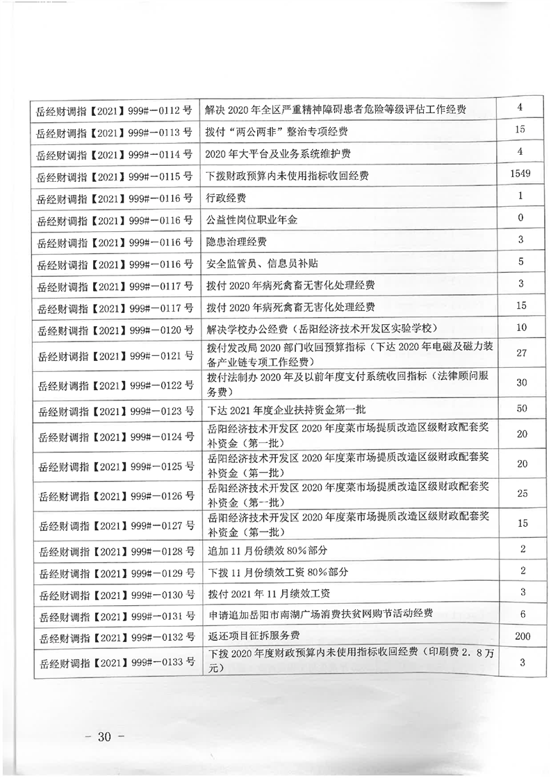关于印发《岳阳经济技术开发区2021年财政预算调整和财政决算方案》的通知