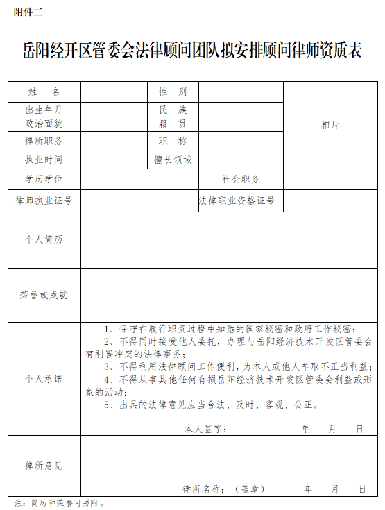 1.《岳阳经开区管委会法律顾问团队律师事务所报名表》