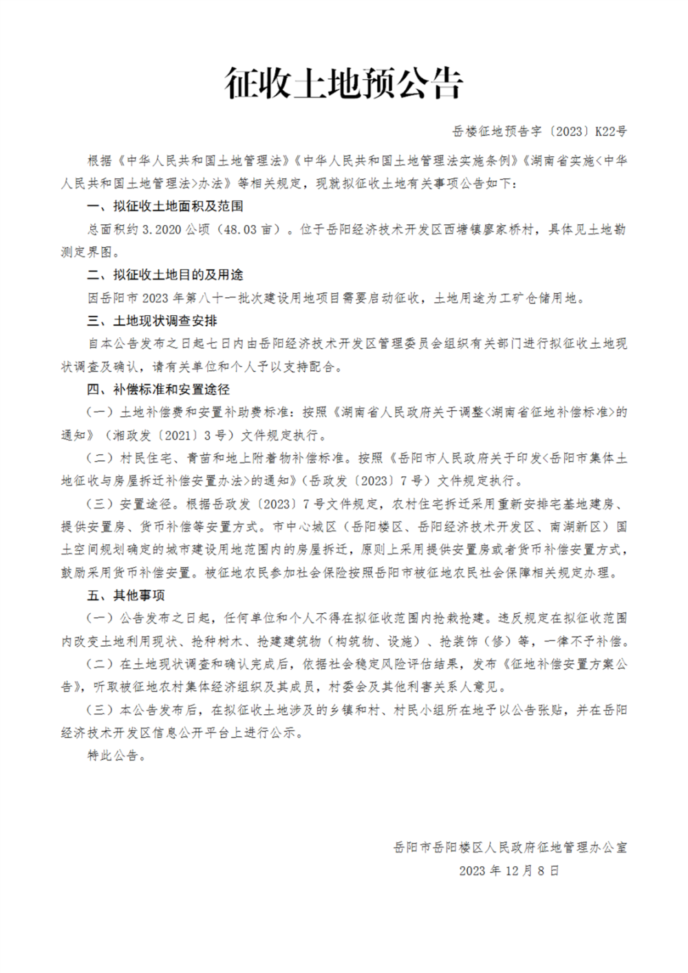 征收土地预公告(2023年第八十一批次)