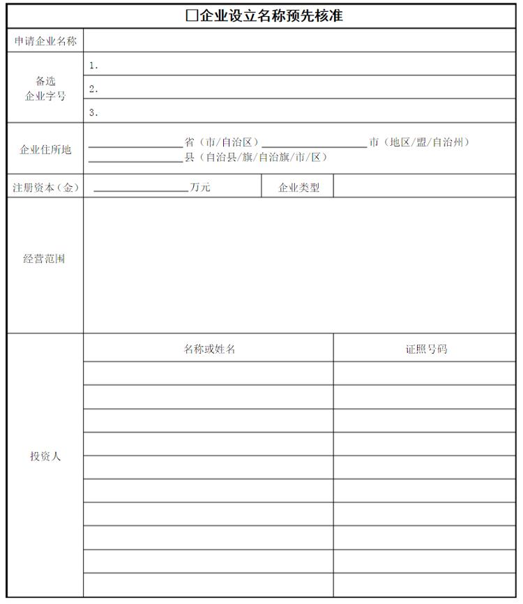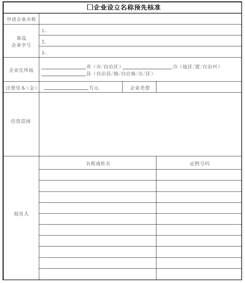 企业名称预先核准申请书