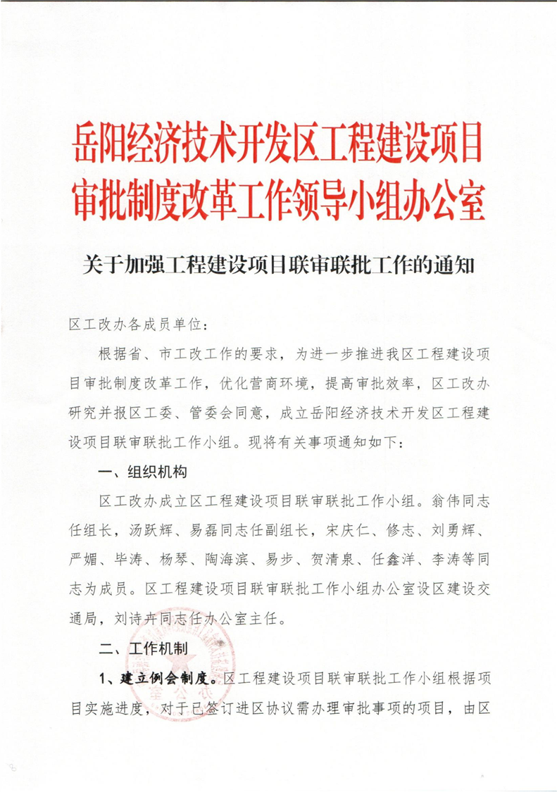 关于加强工程建设项目联审联批工作的通知