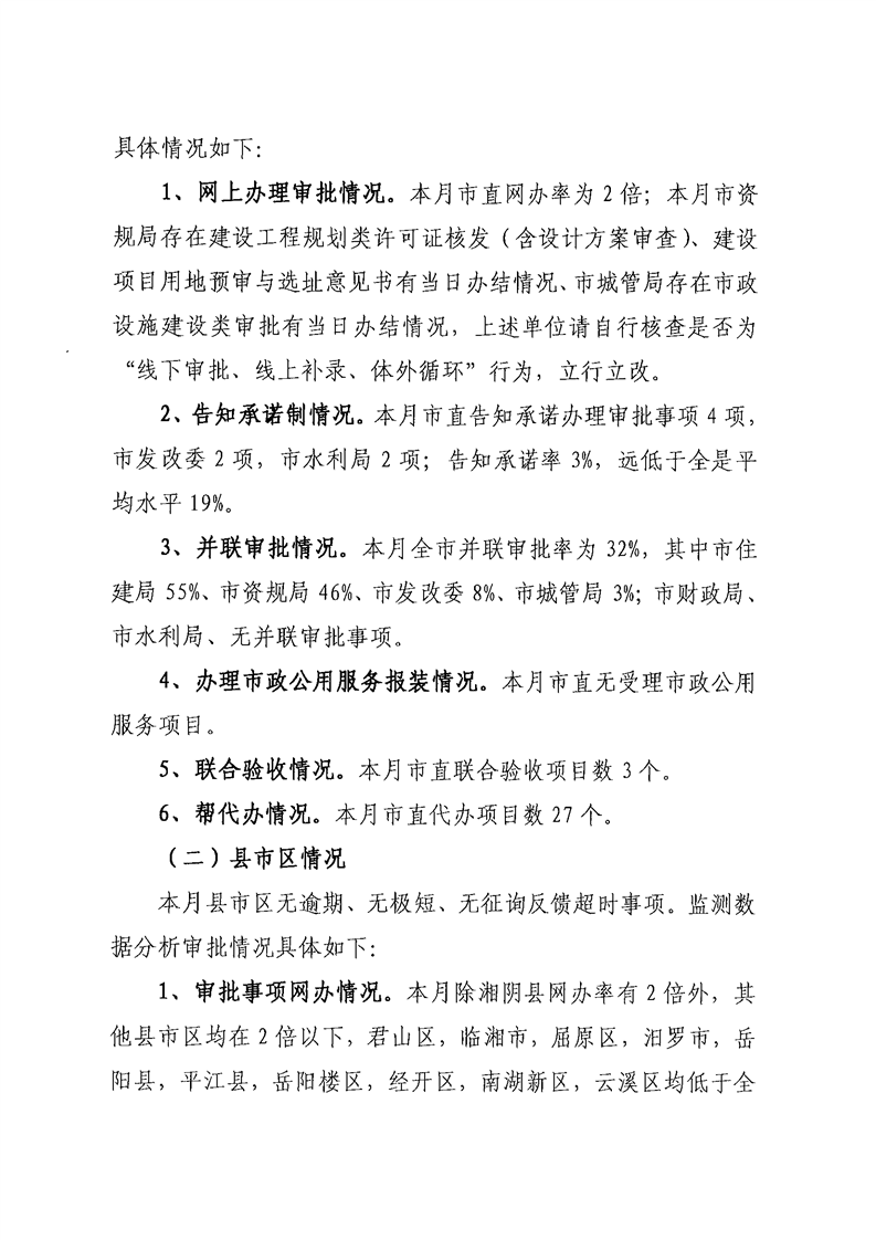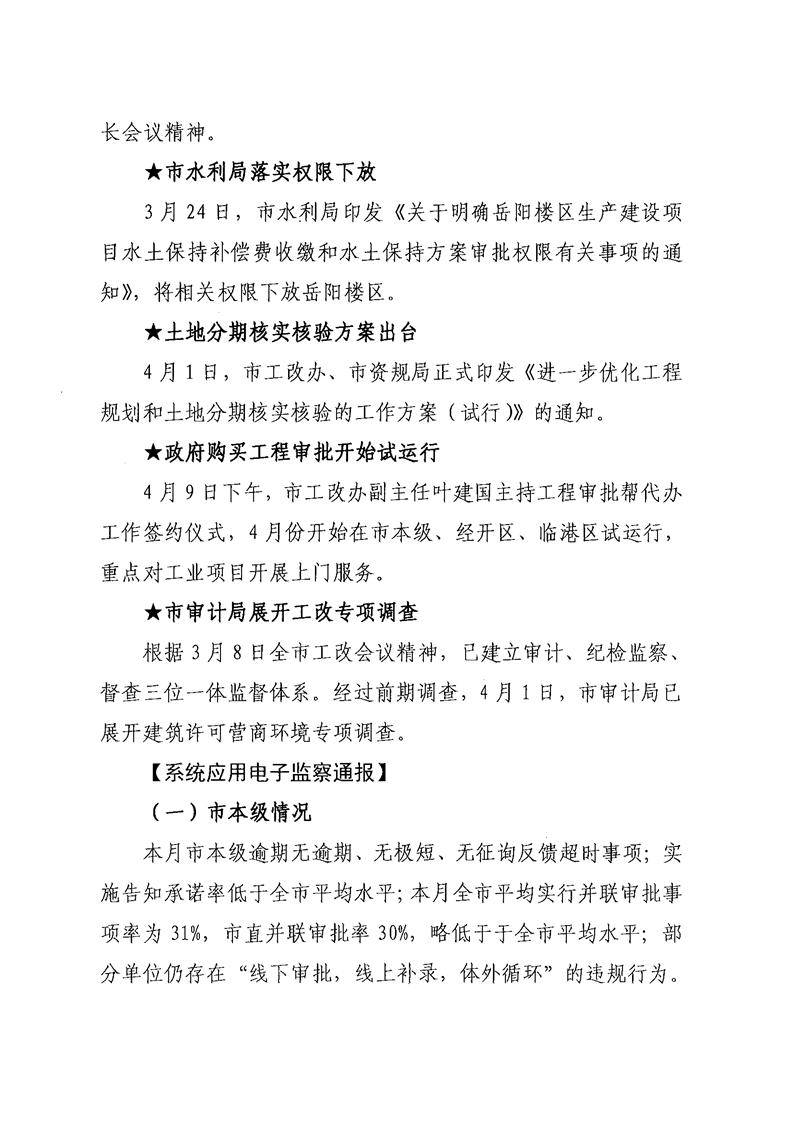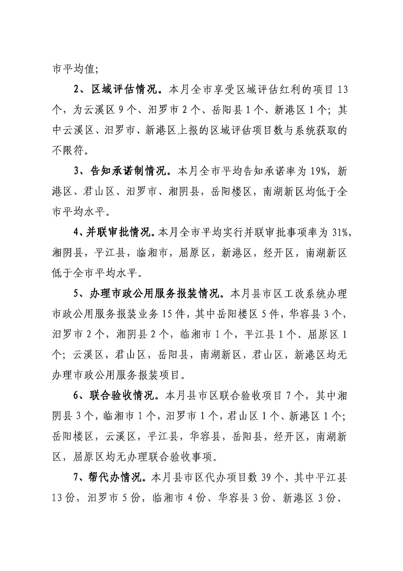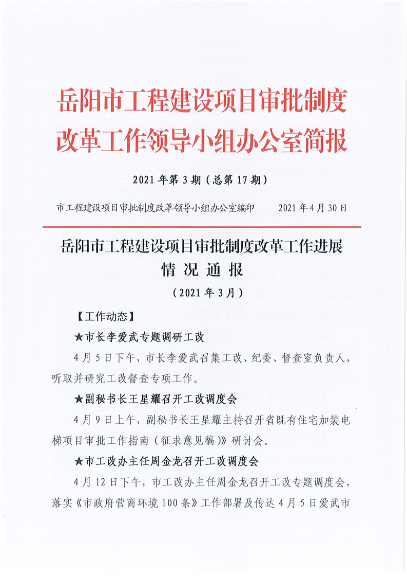 岳阳市工程建设项目审批制度改革工作进展情况通报