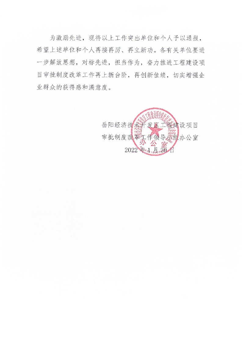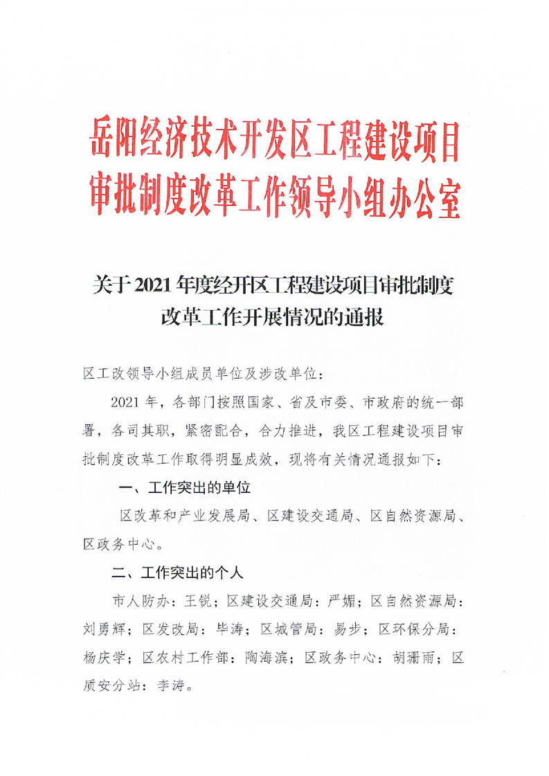 关于2021年度经开区工程建设项目审批制度改革工作开展情况的通报