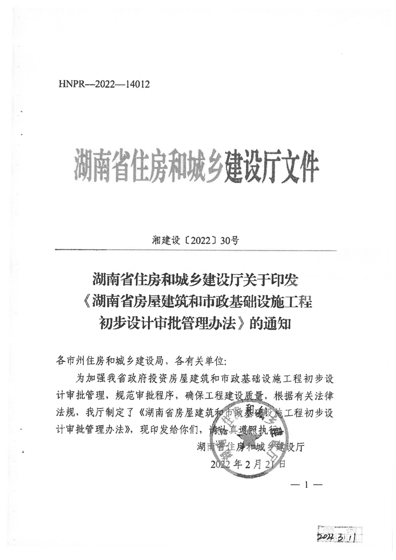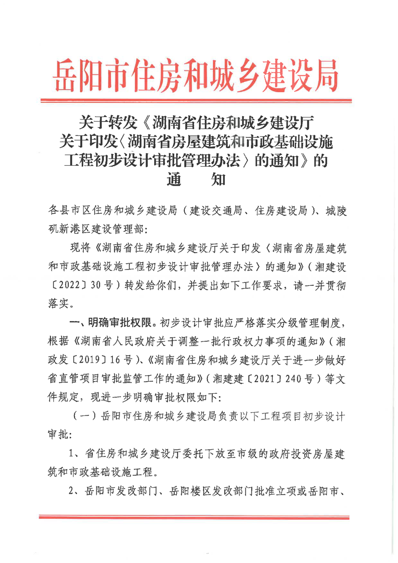 关于转发《湖南省住房和城乡建设厅关于印发〈湖南省房屋建筑和市政基础设施工程初步设计审批管理办法〉的通知》的通知