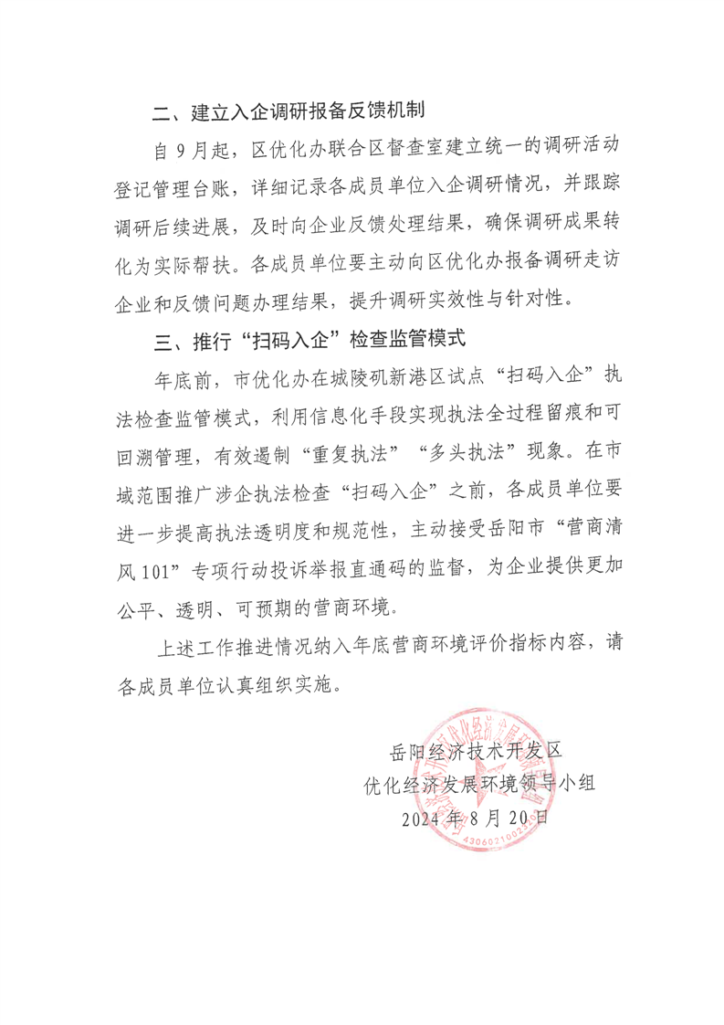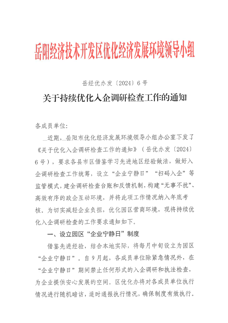 关于持续优化入企调研检查工作的通知