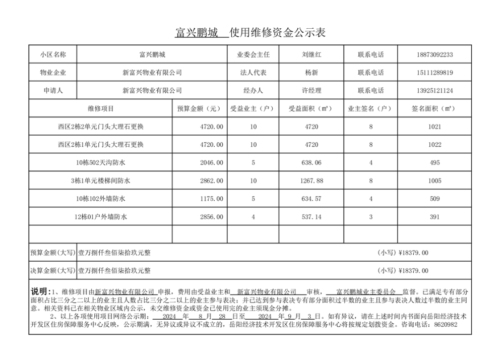 富兴鹏城维修资金网上公示表