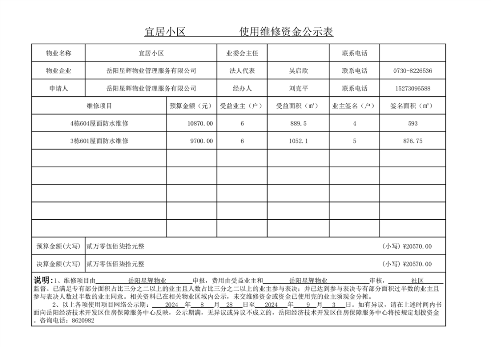 宜居小区维修资金网上公示表