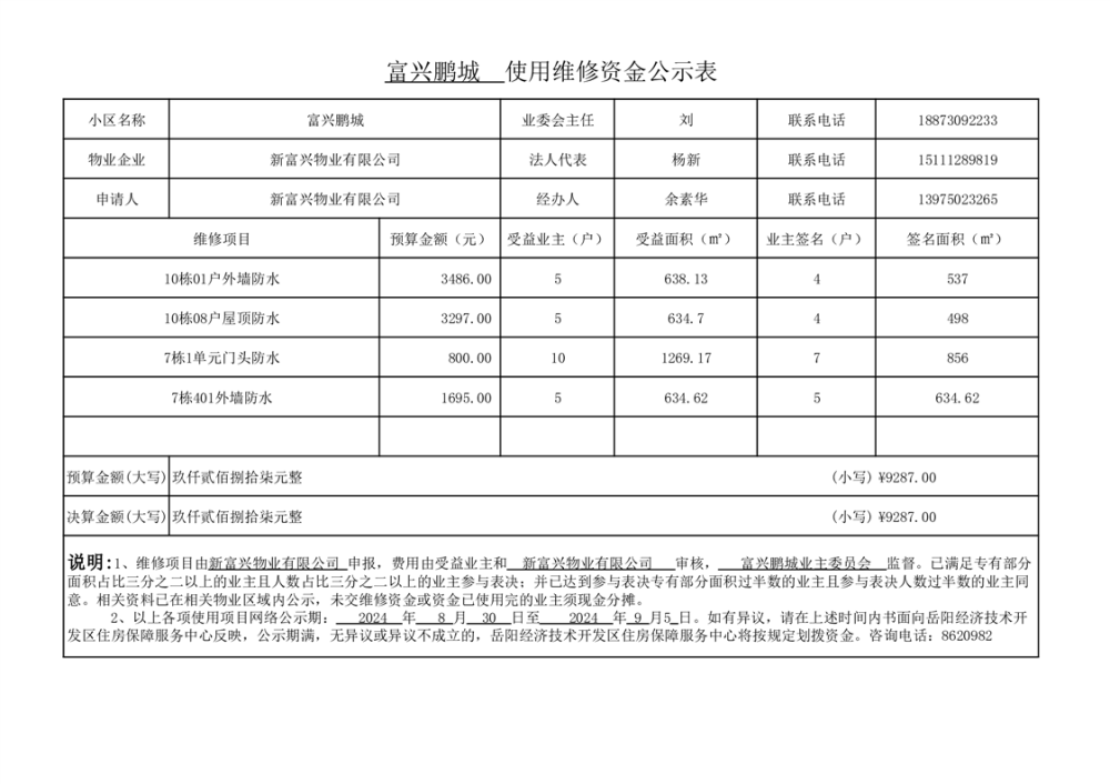 富兴鹏城维修资金网上公示表