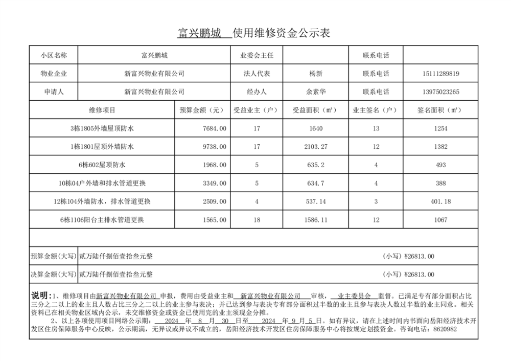 富兴鹏城维修资金网上公示表二