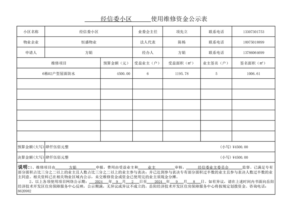 经信委小区维修资金网上公示表1