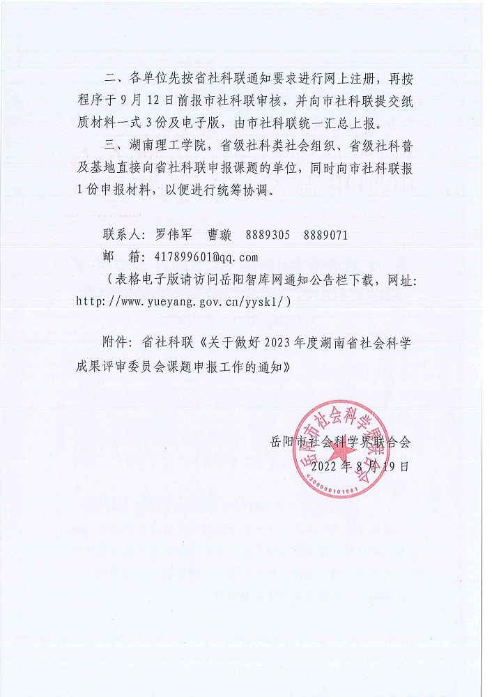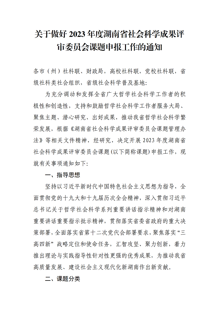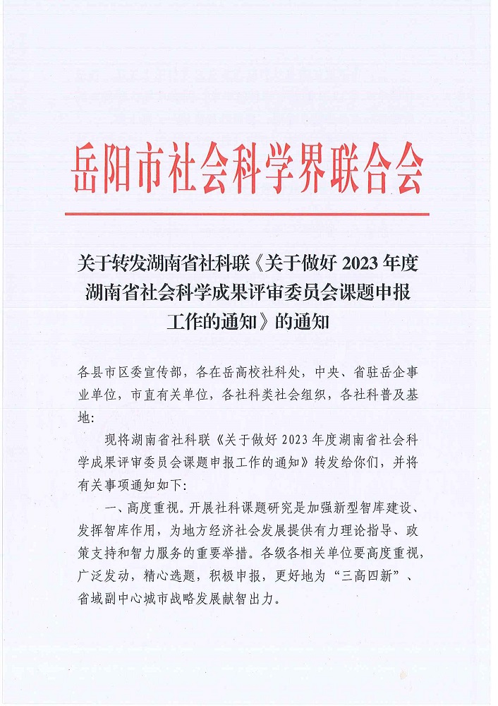 关于转发湖南省社科联《关于做好2023年度湖南省社会科学成果评审委员会课题申报工作的通知》的通知