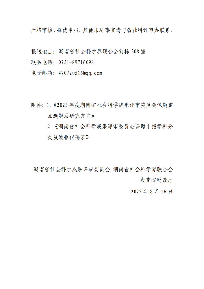 附件1:2023年度湖南省社会科学成果评审委员会课题重点选题及研究方向