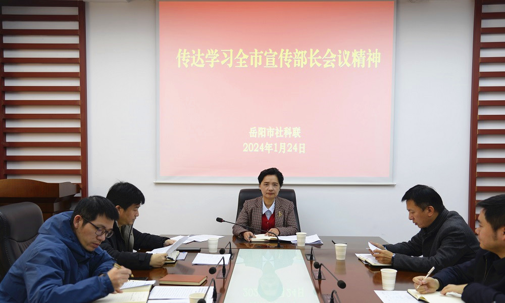 任欣欣就贯彻落实好全市宣传部长会议精神表示:一要高举旗帜,切实增强做好新时代宣传思想文化工作的光荣感、使命感、责任感。宣传思想文化工作是党的一项极端重要的工作。2023年全国宣传思想文化工作会议正式提出了习近平文化思想,宣传思想文化工作迎来了繁荣发展的春天。我们要坚持以习近平新时代中国特色社会主义思想为指引,深入贯彻落实习近平文化思想,认真贯彻落实2024年全省、全市宣传部长会议精神,肩负起新的文化使命,充分认识“两个确立”的决定性意义,坚决做到“两个维护”。拥抱这个春天,大有可为,也必将大有作为。二要秉持使命,培根铸魂,再接再厉,再立新功。要坚守马克思主义这个魂脉和中华优秀传统文化这个根脉,围绕习近平新时代中国特色社会主义思想的重大观点特别是原理性理论成果,突出整体性、逻辑性,突出继承性、发展性,突出原创性、时代性,突出系统性、专业性,设立研究专项和重点课题,举办理论研讨会,引导社科理论界着力开展研究阐释;建强用好学习强国平台和湖南省当代中国马克思主义研究中心岳阳市基地,加强与省社科院战略合作,积极争取省社科联指导支持,整合全市理论人才资源,紧紧围绕重大课题,深入开展调查研究,推出一批有高度、有深度、有说服力、能指导实践的研究阐释成果;深化新时代忧乐精神研究阐释宣传攻坚行动,挖掘整理李白、杜甫等文化名人在岳文化资源。积极参加任弼时诞辰120周年系列纪念活动、左宗棠与近代新疆学术研讨会等;指导支持市新闻工作者协会、市思想政治工作研究会等社会组织成功换届。三要坚持党的全面领导,提升干部队伍“战斗力”。扎实推进党的政治建设、思想建设、组织建设、作风建设、纪律建设,做到坚信笃行、好学能文。用好调查研究这个传家宝,持续深化增强“四力”教育实践,团结哲学社会科学“五路大军”,形成强大工作合力,干在实处,走在前列,为落实市委“1376”总体思路、奋力谱写社会主义现代化“七个岳阳”新篇章作出新的更大贡献。