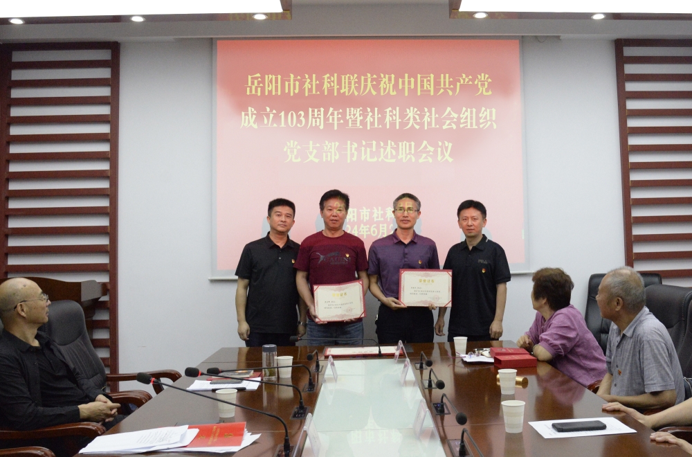 活动在庄严嘹亮的国歌声中拉开帷幕。会议为市社科联老党员龙庆林同志颁发“光荣在党50年”荣誉章,并表彰了优秀共产党员、优秀党务工作者和社科类社会组织先进党支部。2023年来,在市委、市政府的正确领导下,市社科联坚持以习近平新时代中国特色社会主义思想为指导,团结带领全市社科界紧紧围绕学习宣传贯彻党的二十大精神主题主线,突出重点,奋发作为,取得了显著新成绩。在社科事业发展中充分发挥党支部的战斗堡垒作用和党员先锋模范作用,涌现出一批优秀党员、优秀党务工作者和先进党支部。郭小龙、罗伟军分别荣获市社科联机关党支部优秀共产党员、优秀党务工作者;黄军建、王志龙、邹律资、周畅、卢官振等16人荣获市社科联社会组织行业党委优秀党务工作者;市未成年人心理健康教育学会党支部、市忧乐精神研究会党支部、市审计学会党支部、市现代远程教育研究会党支部等7个党支部荣获岳阳市社科类社会组织先进党支部。市未成年人心理健康教育学会、市现代远程教育研究会、市群众文化学会、市少儿诗歌书画研究会等4个党支部在会上述职,交流党建工作履职成绩,畅谈对党建工作的认识和体会。