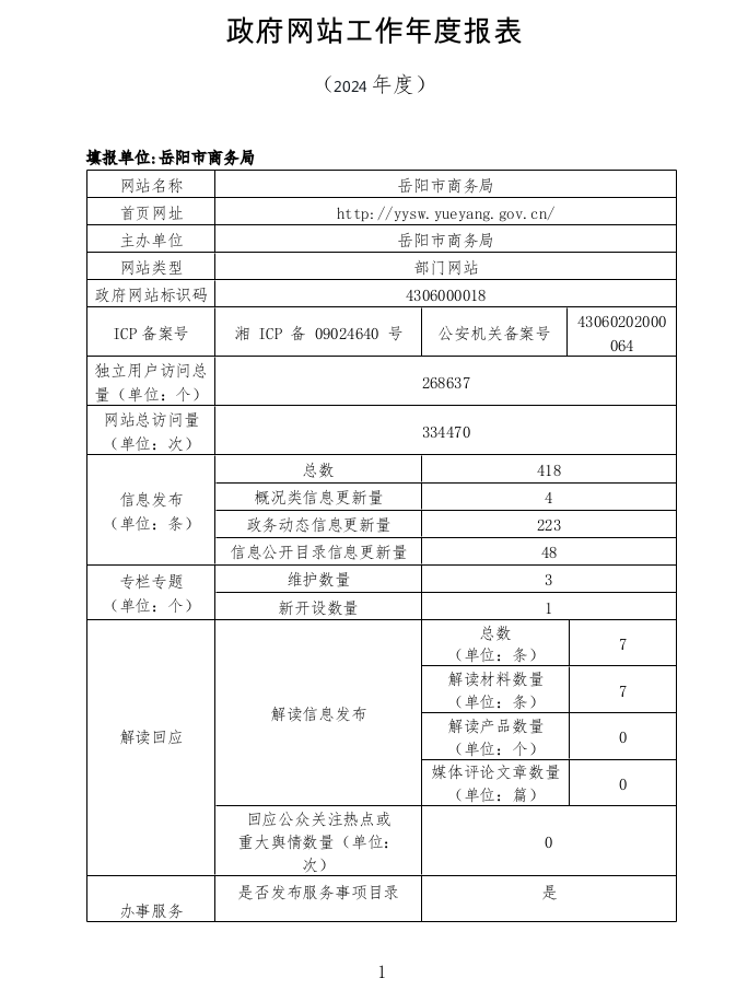 岳阳市商务局2024年度网站工作年度报表