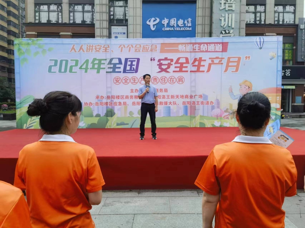 岳阳市商务局组织开展2024年岳阳市商务系统“安全生产月”应急演练暨宣传咨询日活动
