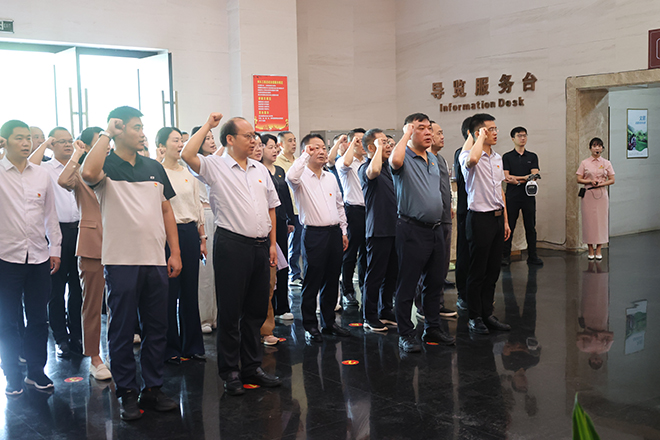 在何长工同志纪念馆,学员们重温入党誓词,认真聆听了革命先辈何长工的光辉奋斗历程和模范事迹。透过一张张历史照片、一幅幅感人画面、一件件珍贵实物,学员们深刻感受到老一辈革命家奋斗不息的“长工精神”和为民服务的家国情怀,从革命历程中汲取信仰力量,进一步强化了理论联系实际、深入调查研究的思想自觉与行动自觉。